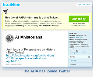 The AHA is also on Twitter. Visit our page and follow our tweets for news and information about the AHA and the history profession.