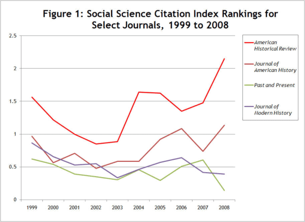 By this measure, the AHR has been the top-rated journal in history for more than a decade, ranking well above more specialized journals such as the Journal of American History and the Journal of Modern History (Figure 1).