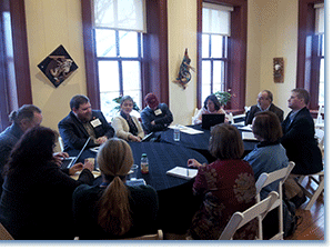 More than 20 topical workshops and discussions formed most of agenda for the busy two-day meeting. The themes for these conversations emerged out of the challenges and success stories that participants reported from implementing a range of Tuning-inspired processes last fall. Some of these questions were ones that historians at every institution might consider, like “What models do we have for the roles that history can play in the general education core, and how do different models affect student learning outcomes?” Two sessions centered on major recruitment, advising, and student retention—a set of issues that are closely related in many programs. In the first of these, William Storey (Millsaps Coll.) and Teresa Blue Holden (Greenville Coll.) led participants to consider practical steps that faculty can take to foster a holistic sense of “intellectual hospitality” that draws students into history and helps to keep them connected to each other and to faculty and staff in the unit. AHA Deputy Director Robert Townsend presented on how individual participants might effectively conduct surveys of current history students and alumni, and Executive Director James Grossman and Tracy Neal Leavelle (Creighton Univ.) led a discussion about how historians at colleges and universities can reach out to local and regional employers on behalf of their students.