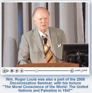 The seminar was generously funded by the Andrew W. Mellon Foundation and also featured a lecture on July 16 by Wm. Roger Louis on “The Moral Conscience of the World: United Nations and Palestine in 1947.” Professor Louis, the Kerr Chair of English History and Culture at the University of Texas at Austin, is also the founding director of the National History Center. His lecture, also available by web cast, examined the Palestine crisis of 1947 and the creation of a Jewish state in the next year. It was a critical moment that changed the colonial world order. The partition of the country tested the principles of self-determination and its debate in 1947 still has a lasting effect. As the British Empire decolonized, the United Nations played a crucial role in the creation of Israel.