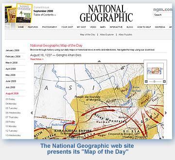 National Geographic offers a number of map resources (many of which have been incorporated into EDSITEment lesson plans). But in this post we’ll focus on their Map of the Day, which allows visitors to “browse through history using…daily maps of historical news events and milestones.” Though the majority of the maps of the day are traditional maps, the site sometimes use the term map more broadly, including things like a diagram of the 1903 patent for the Wright brothers’ “flying machine,” the plan for the USS Monitor, and a 17th-century Qing Dynasty woodblock print. Each day the selected map is presented with a few paragraphs of background information and a quiz question.