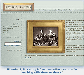 It seems everywhere we turn today we’re reading and hearing about new digital media fronts, especially when it comes to scholarly research and alternative teaching methods. Picturing U.S. History: An Interactive Resource for Teaching with Visual Evidence, a collaborative project between the American Social History Project and the Center for Media and Learning at City University of New York Graduate Center, is certainly no exception. Funded by the National Endowment for the Humanities, this interactive web site promotes ways for teachers in art history, American studies, and other humanities to incorporate historical visual media into their lesson plans.
