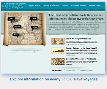 From datasets to CD-ROM to online project, the Trans-Atlantic Slave Trade Database was decades in the making. And it was time well spent. Voyages (the web site of the project) allows users to experience information on nearly 35,000 slave voyages through a clean and well-designed interface.